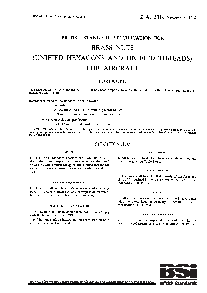 Specification for brass nuts (Unified hexagons and Unified threads) for aircraft