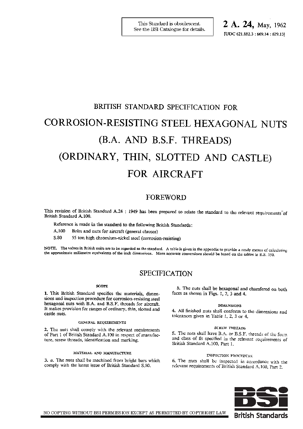 Internal-thread fasteners;Nickel steels;Corrosion-resistant steels;Hexagonal-head fasteners;Slotted-head fasteners;Chromium steels;Air transport engineering;Threaded components;Threaded fasteners;Castellated-head fasteners;Nuts;Aircraft components;Designations;British Association screw threads;Dimensions;BSF screw threads;High-alloy steels;Fasteners;Size