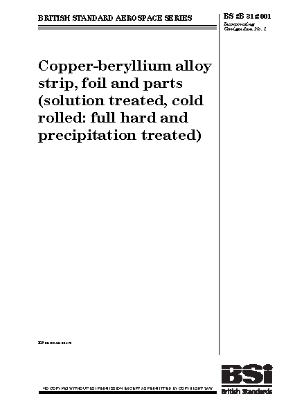 Copper-beryllium alloy strip, foil and parts (solution treated, cold rolled: full hard and precipitation treated)