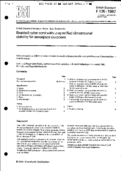Specification for braided nylon cord with unspecified dimensional stability for aerospace purposes