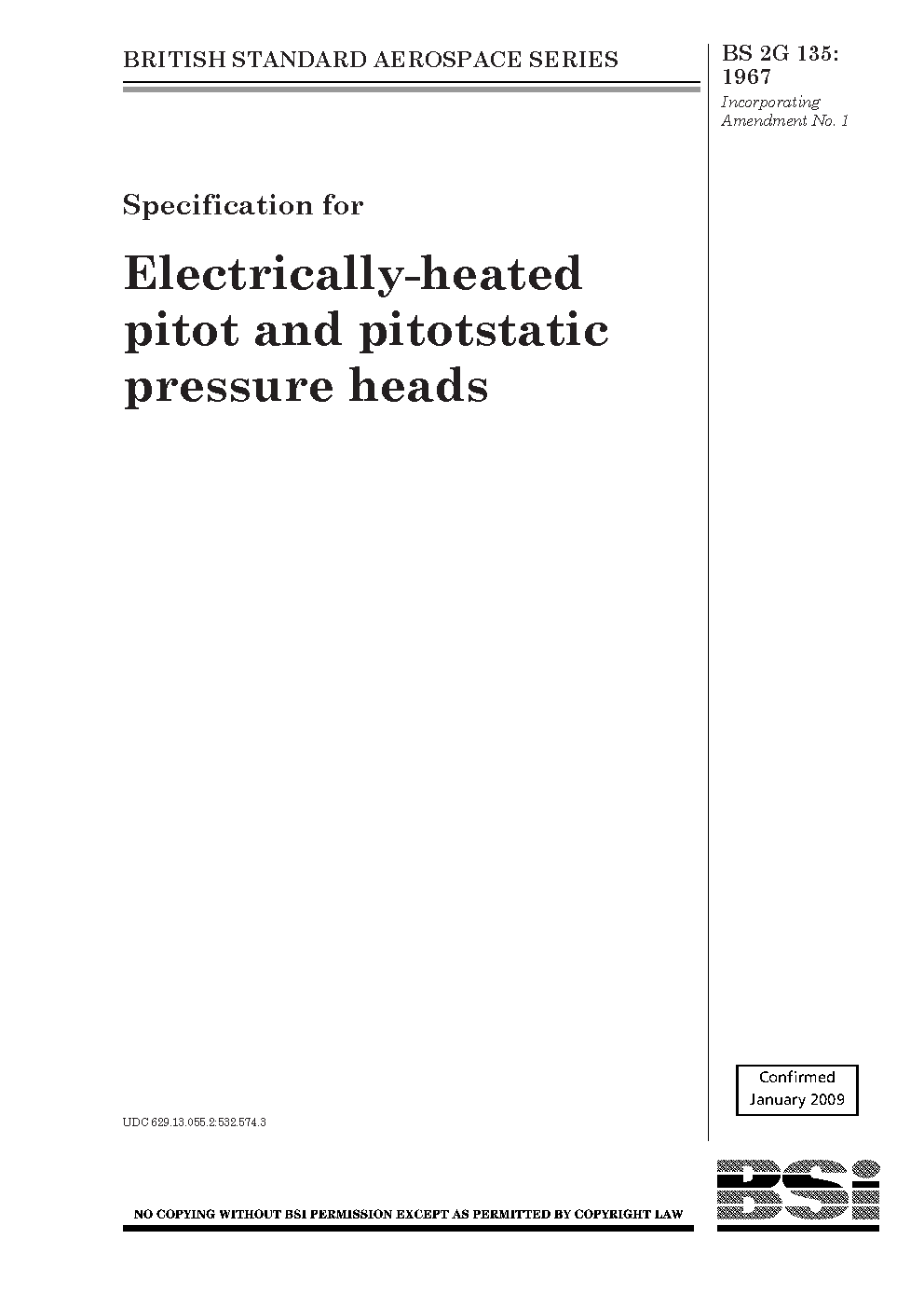 Specification for electrically-heated pitot and pitotstatic pressure heads