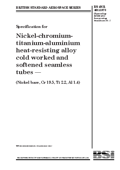 Specification for nickel-chromium-titanium-aluminium heat-resisting alloy cold worked and softened seamless tubes (nickel base, Cr 19.5, Ti 2.2, Al 1.4)