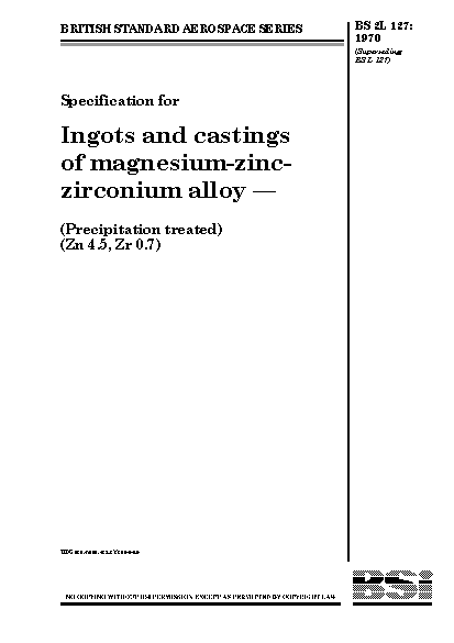 Specification for ingots and castings of magnesium-zinc-zirconium alloy (precipitation treated) (Zn 4.5, Zr 0.7)