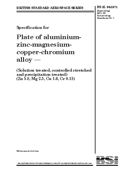 Specification for plate of aluminium-zinc-magnesium-copper-chromium alloy (solution treated, controlled stretched and precipitation treated) (Zn 5.8, Mg 2.5, Cu 1.6, Cr 0.15)
