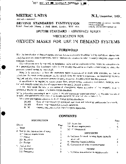 Specification for oro-nasal oxygen mask assemblies for use in demand systems