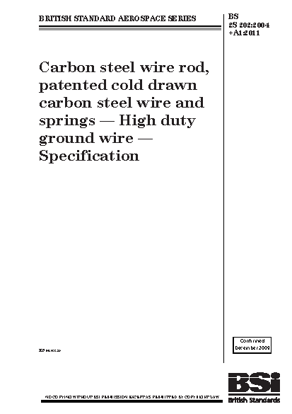 Wires;Air transport engineering;Unalloyed steels;Surface treatment;Heat treatment;Chemical composition;Bars (materials);Aircraft components;Defects;Steels;Tensile strength;Springs;Dimensional tolerances;Cold-working;Etch inspection;Mechanical properties of materials
