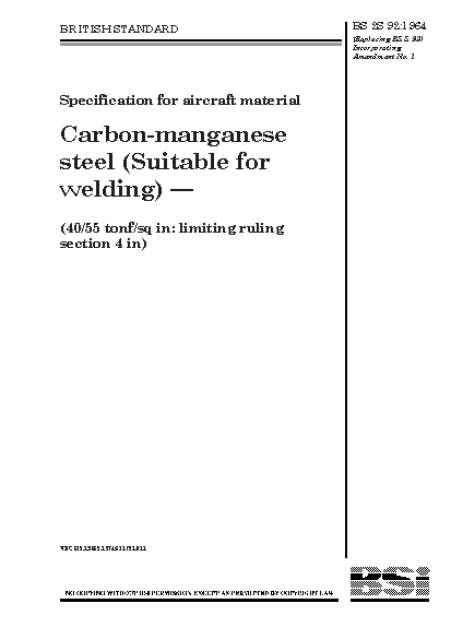 Specification for aircraft material. Carbon-manganese steel (suitable for welding) (40/55 tonf/sq in: limiting ruling section 4 in)