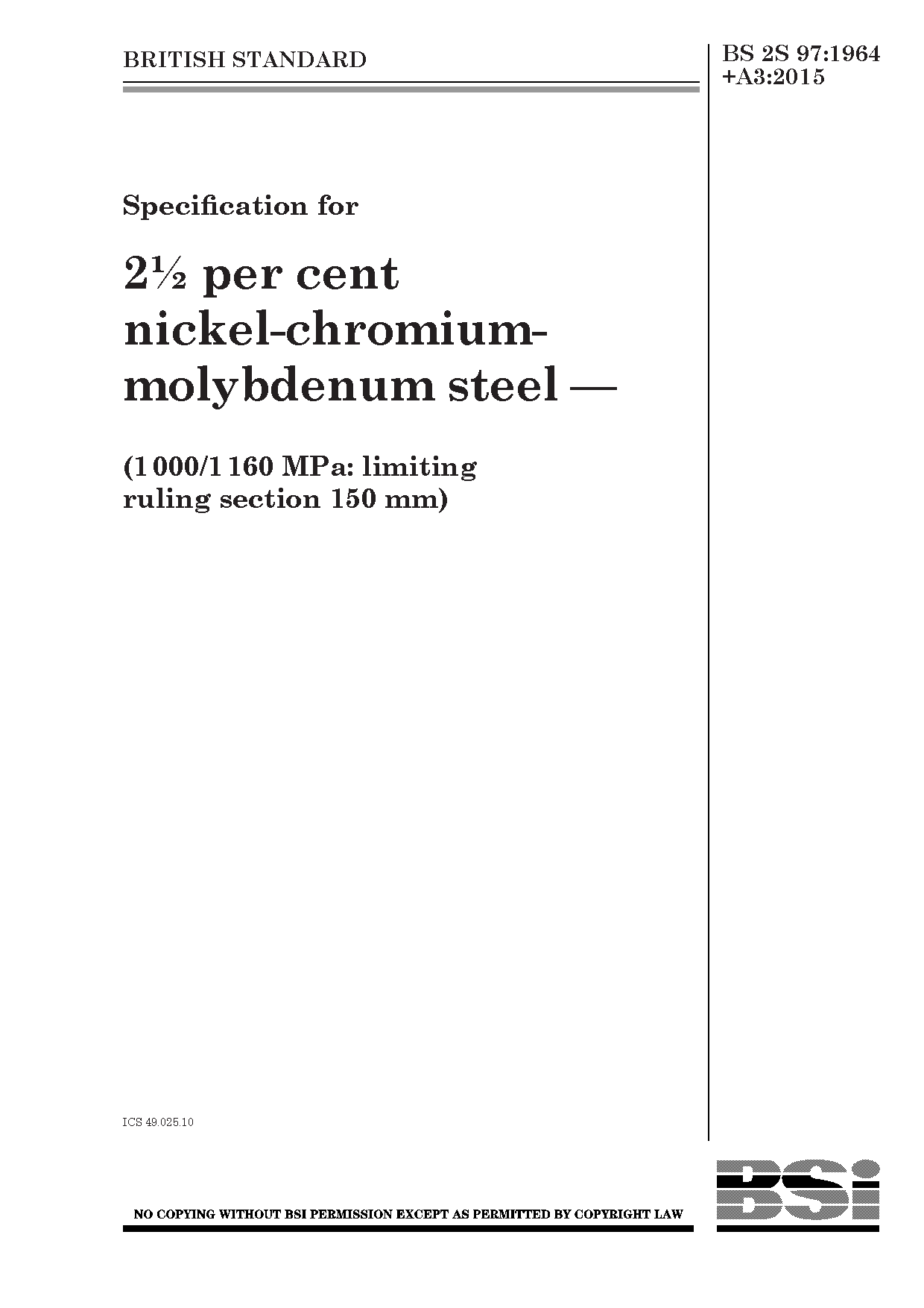 Specification 2½ per cent nickel-chromium-molybdenum steel. (1000/1160 MPa: limiting ruling section 150 mm)