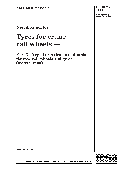 Specification for tyres crane rail wheels Forged or rolled steel double flanged and (metric units)