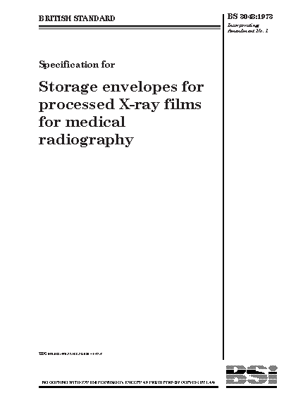 Specification for storage envelopes for processed X-ray films for medical radiography