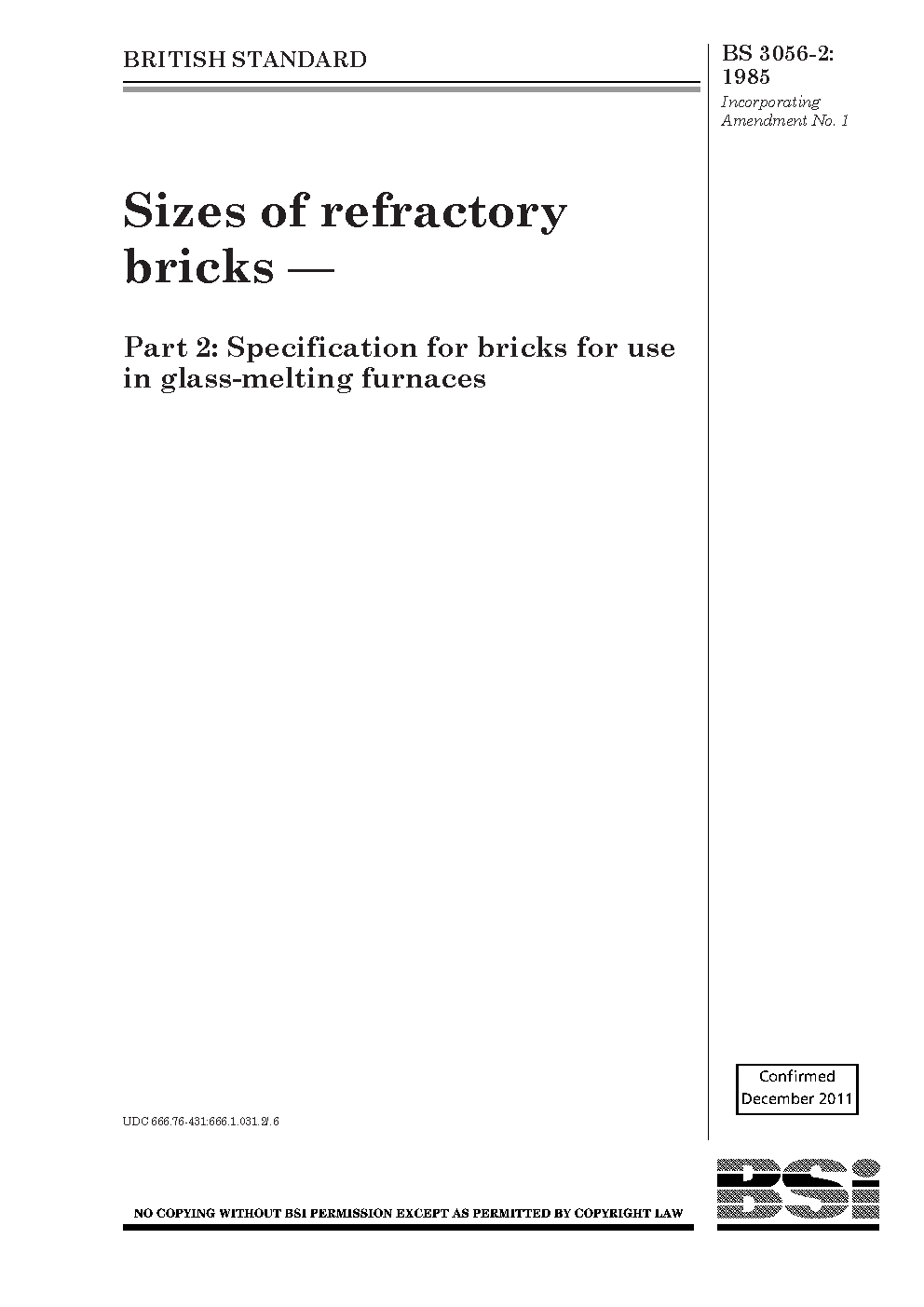 Sizes of refractory bricks Specification for use in glass-melting furnaces