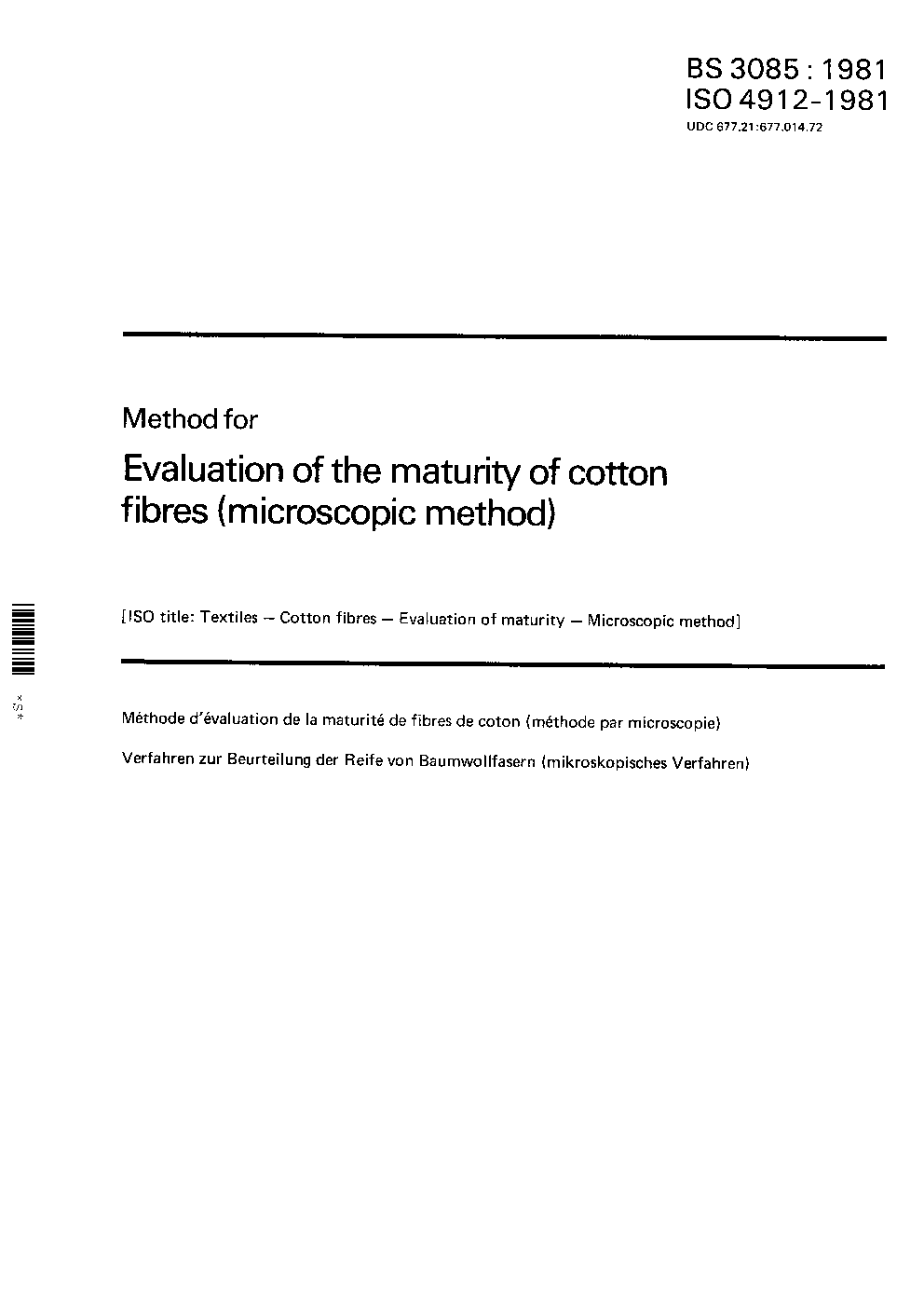 Cotton fibre maturity test (estimation by classification of fibes swollen in sodium hydroxide solution).