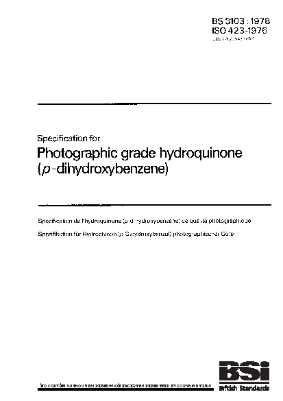 Specification for photographic grade hydroquinone (p-dihydroxybenzene)