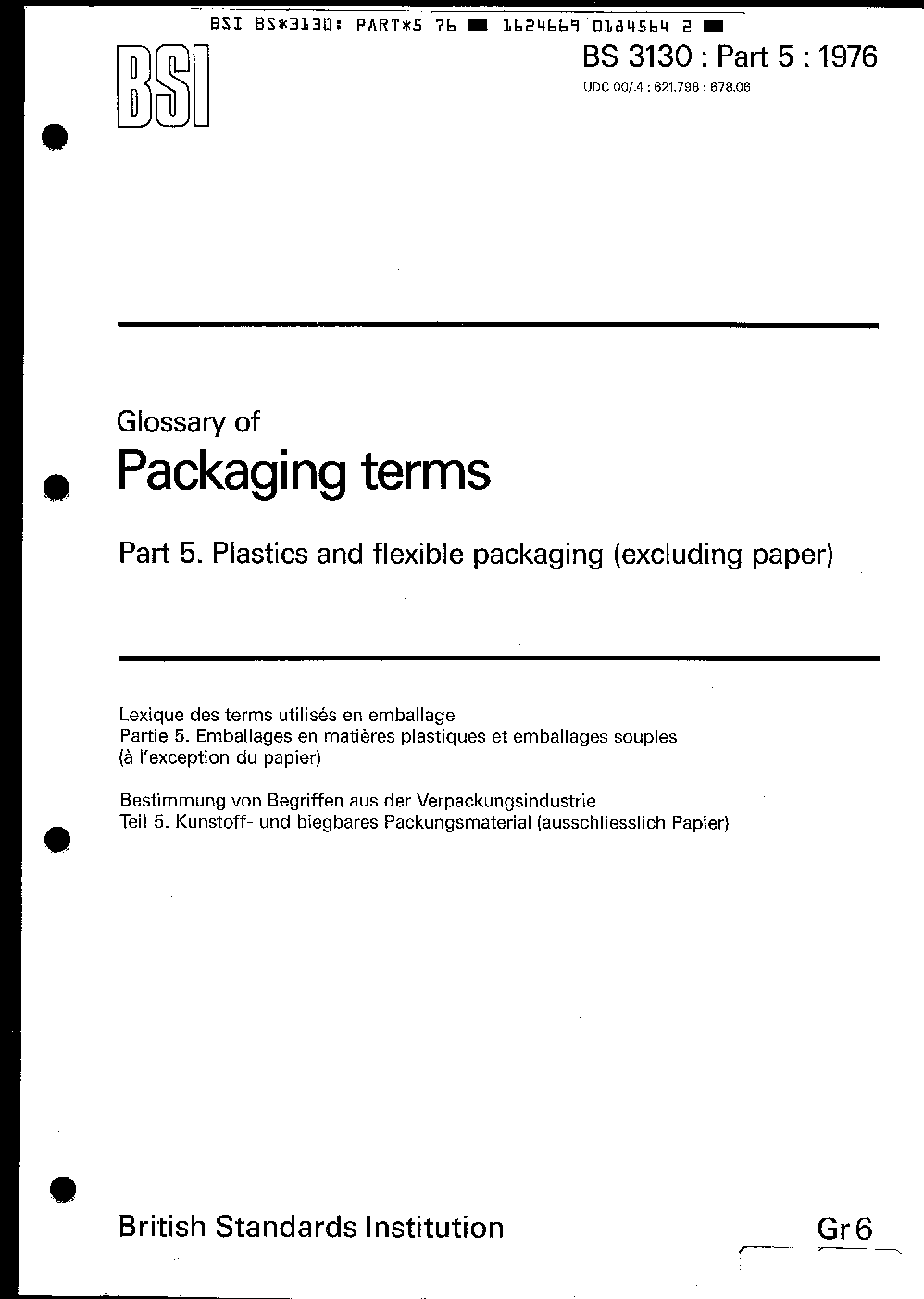Glossary of packaging terms Plastics and flexible (excluding paper)