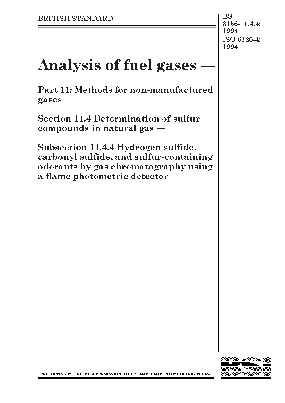 Analysis of fuel gases. Methods for non-manufactured Determination sulfur compounds in natural gas Hydrogen sulfide, carbonyl and sulfur-containing odorants by chromatography using a flame photometric detector