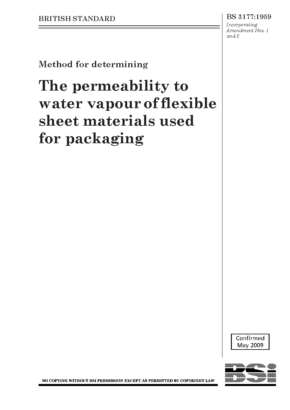 Describes a method designed primarily for use with flexible packaging materials such as paper, plastics films and flexible laminates, but suitable also for certain other materials such as rubber sheeting.