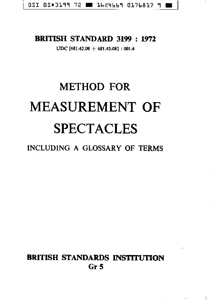 Method for measurement of spectacles including a glossary of terms