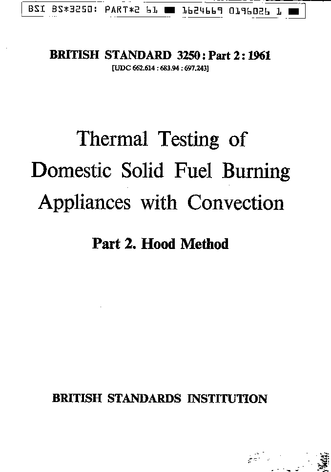 Methods for thermal testing of domestic solid mineral fuel burning appliances with convection convection. Hood method