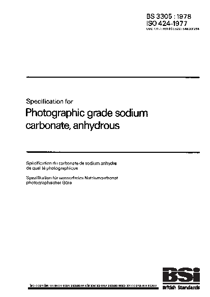 Specification for photographic grade sodium carbonate, anhydrous