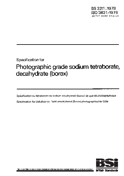 Specification for photographic grade sodium tetraborate, decahydrate (borax)