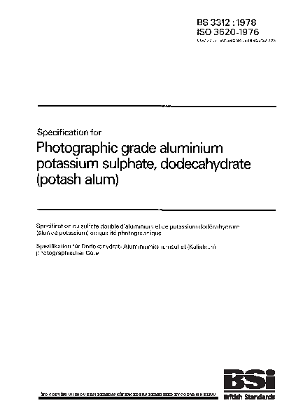 Specification for photographic grade aluminium potassium sulphate, dodecahydrate (potash alum)