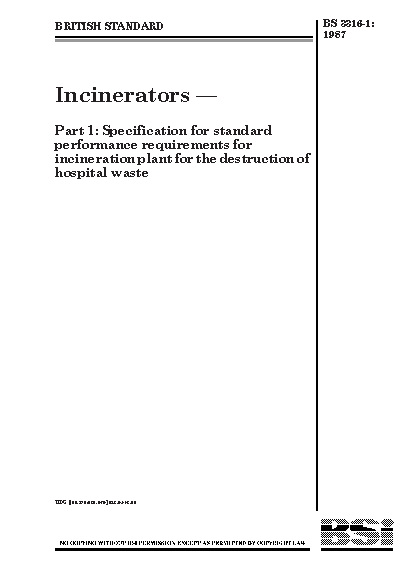 Incinerators Specification for standard performance requirements incineration plant the destruction of hospital waste