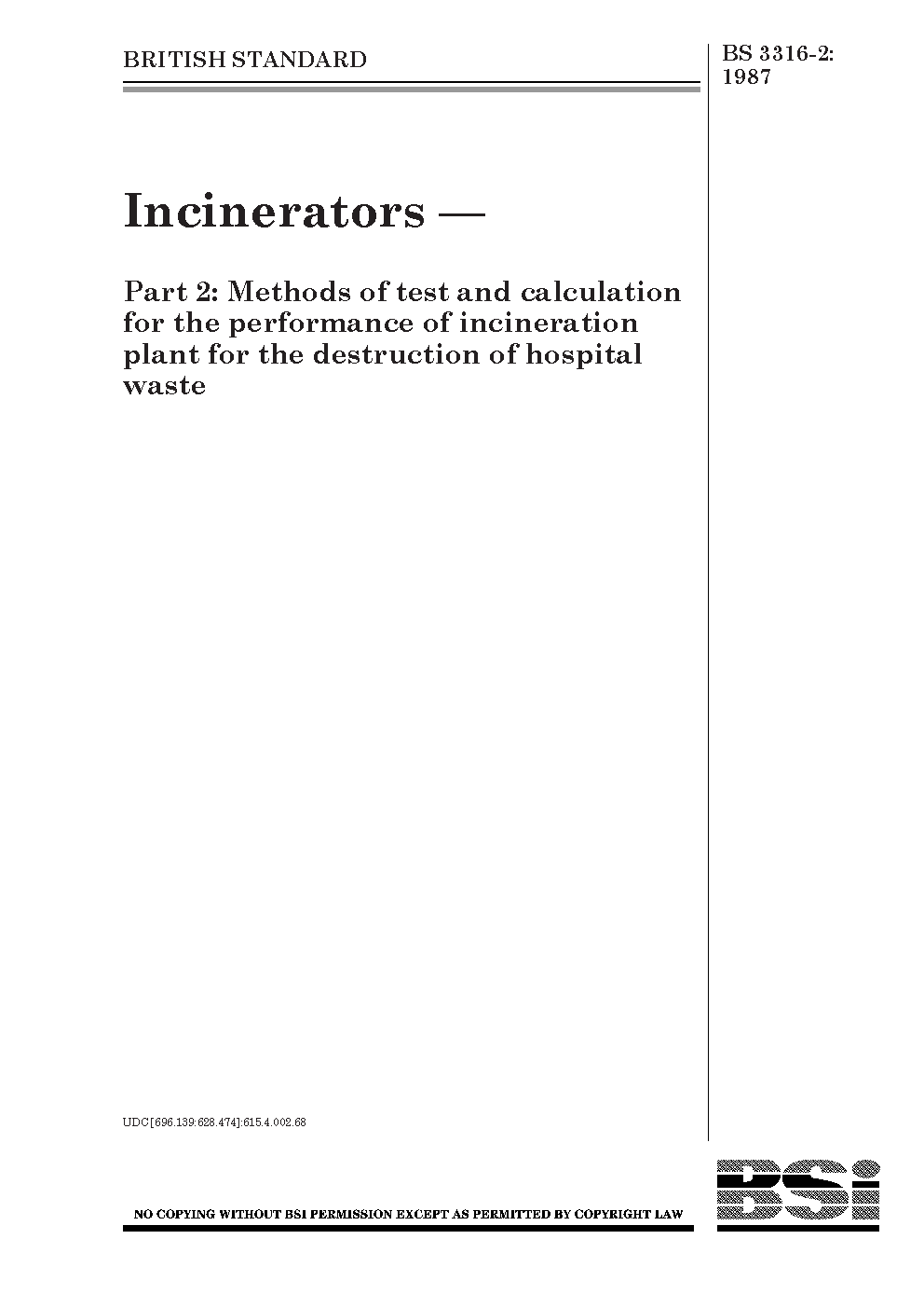 Incinerators Methods of test and calculation for the performance incineration plant destruction hospital waste