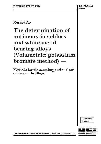 Determination of content;White metal;Bearing alloys;Volumetric analysis;Tin alloys;Solders;Chemical analysis and testing;Antimony