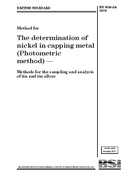 Nickel;Calibration;Chemical analysis and testing;Determination of content;Spectrophotometry;Photometry (chemical analysis);Tin alloys