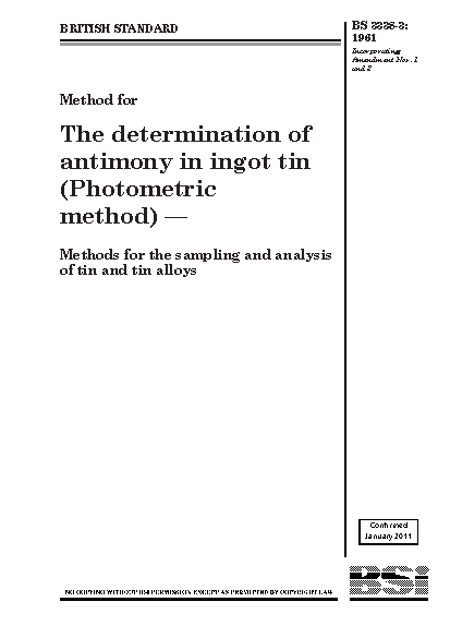 Tin alloys;Chemical analysis and testing;Determination of content;Antimony;Photometry (chemical analysis);Ingots;Calibration;Tin;Spectrophotometry
