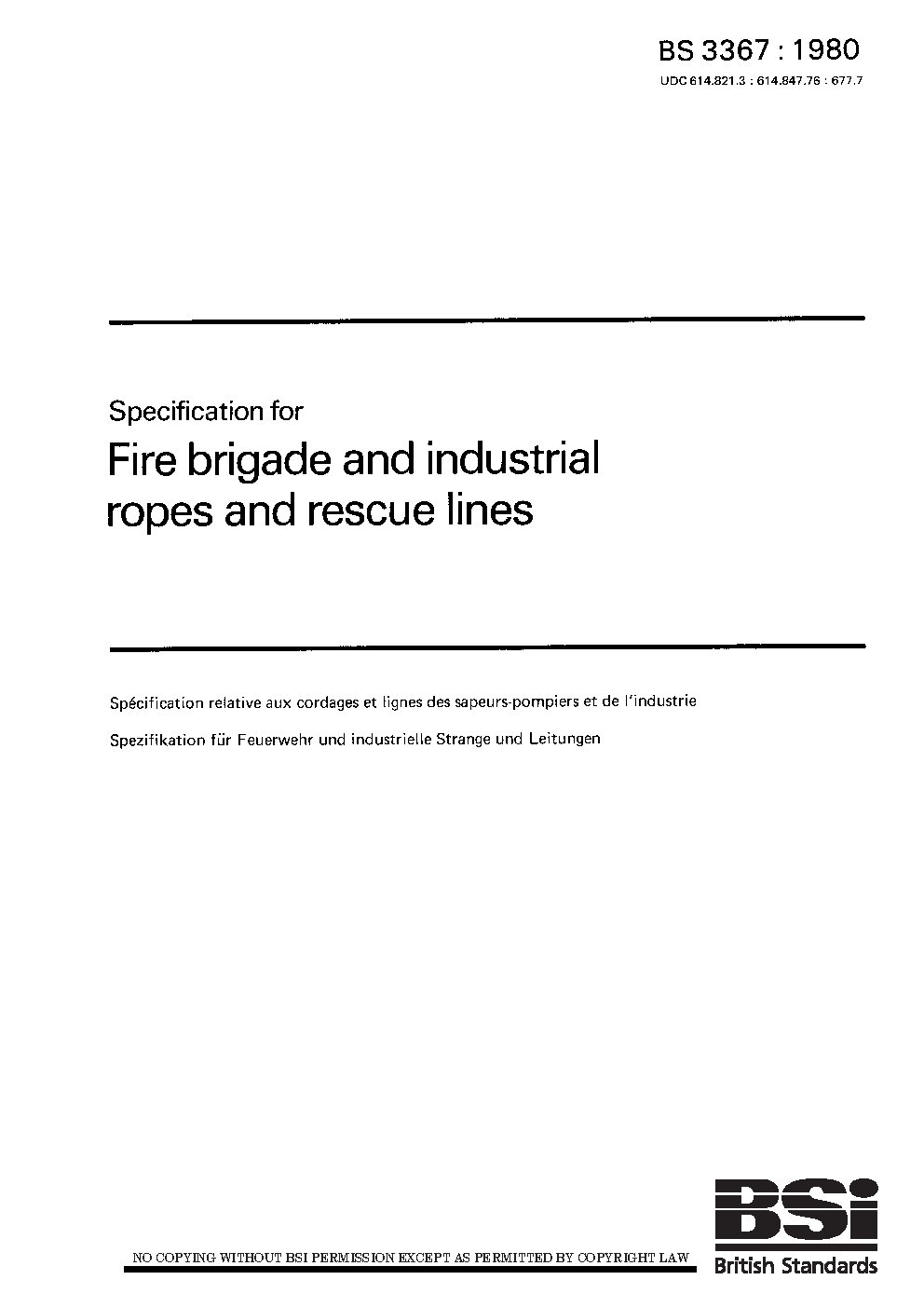 Specification for ropes and lines for fire service use other than for rope rescue purposes