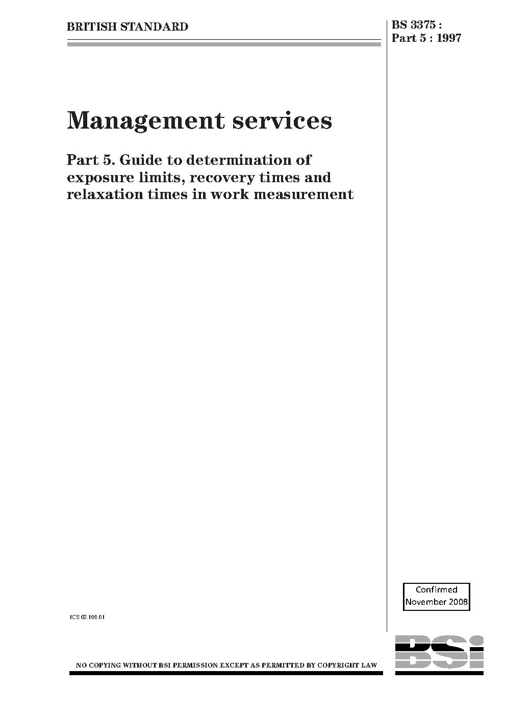 Management services Guide to determination of exposure limits, recovery times and relaxation in work measurement