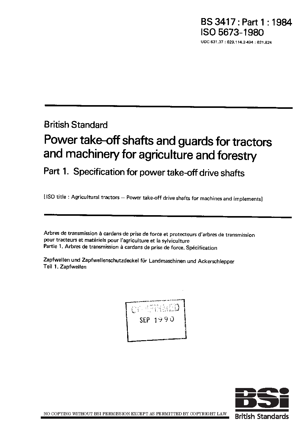 Power take-off shafts and guards for tractors machinery agriculture forestry Specification power drive