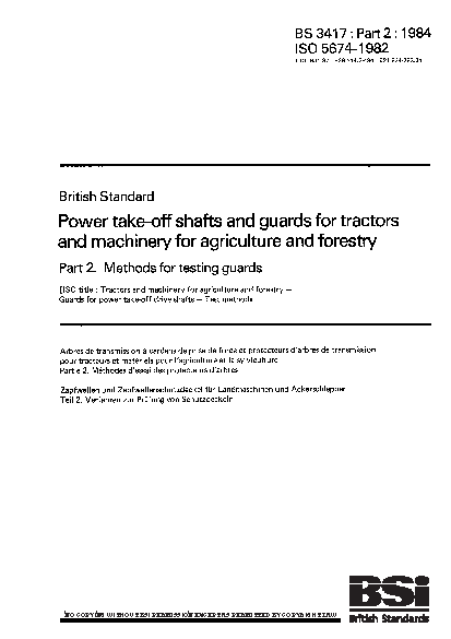 Power take-off shafts and guards for tractors machinery agriculture forestry Methods testing