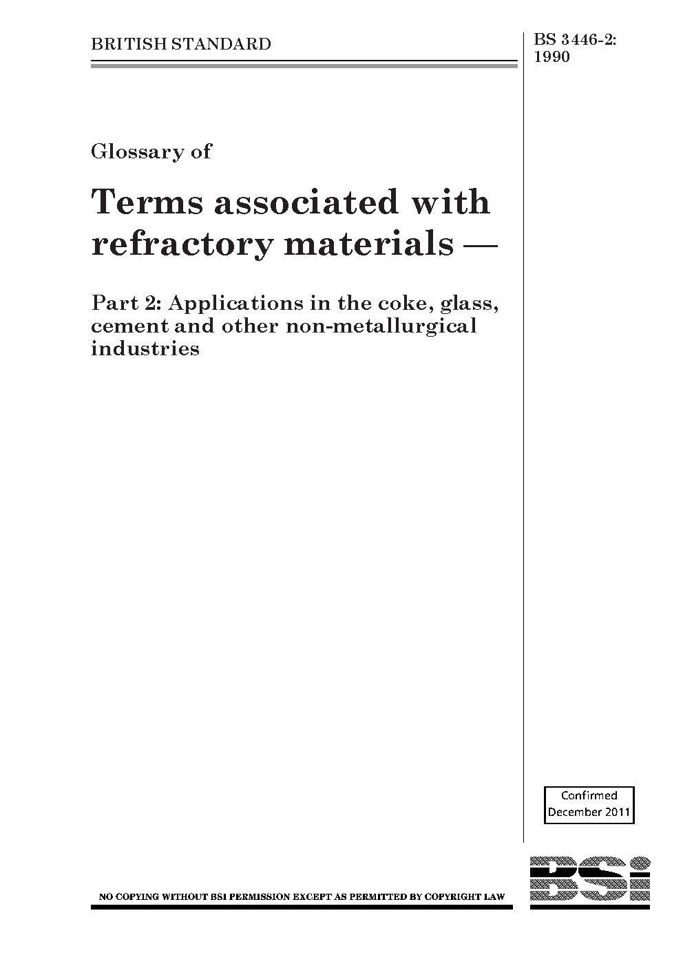 Glossary of terms associated with refractory materials Applications in the coke, glass, cement and other non-metallurgical industries