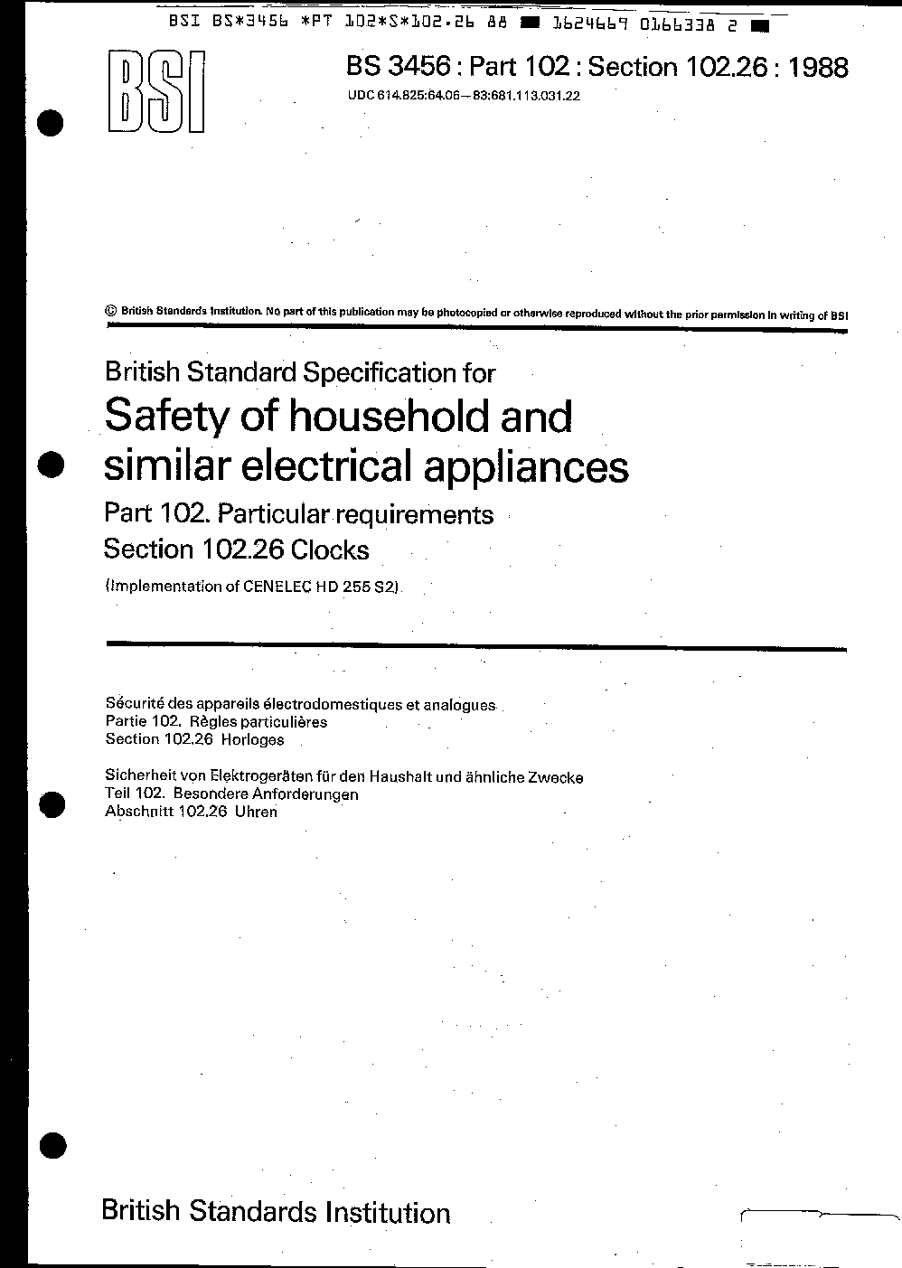 Specification for safety of household and similar electrical appliances. Particular requirements Clocks