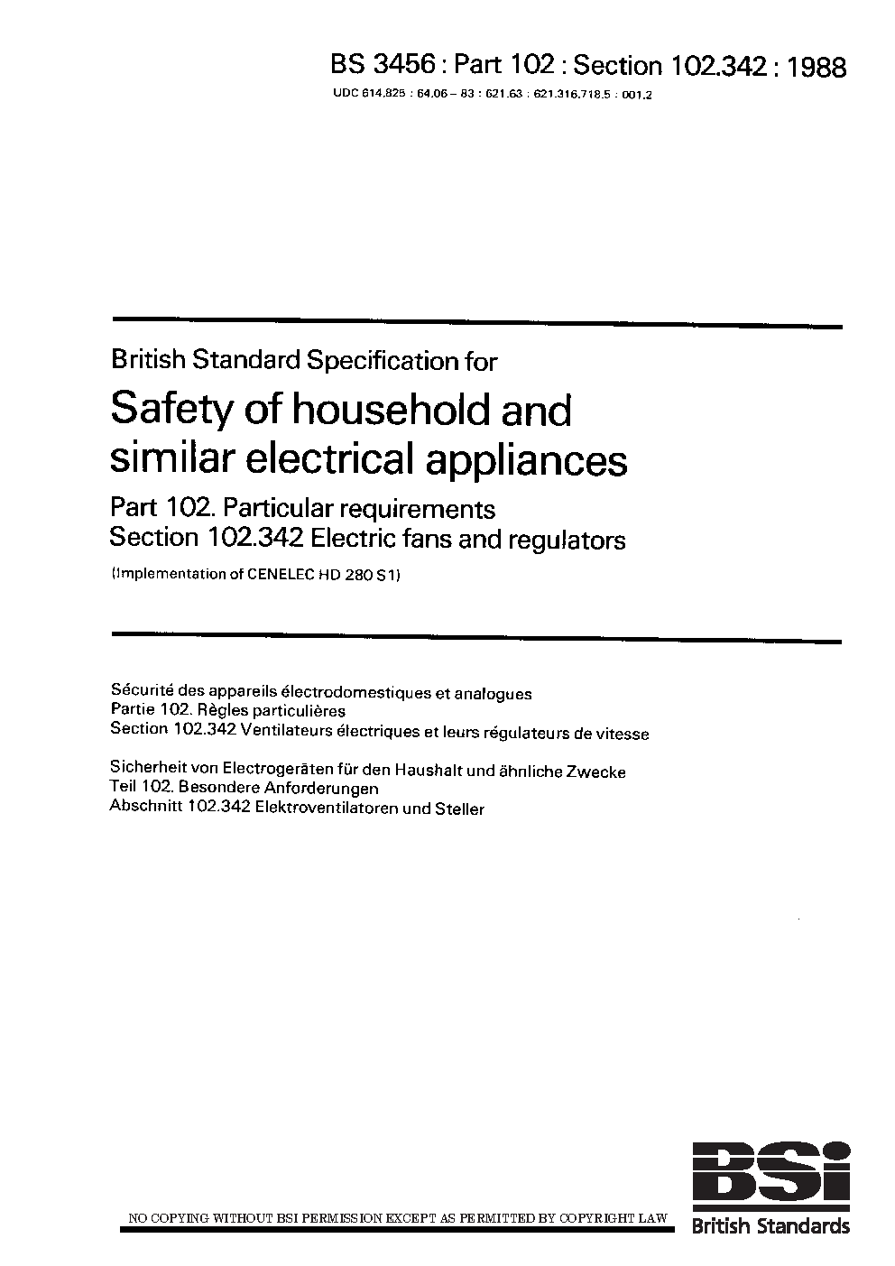 Specification for safety of household and similar electrical appliances. Particular requirements Electric fans regulators