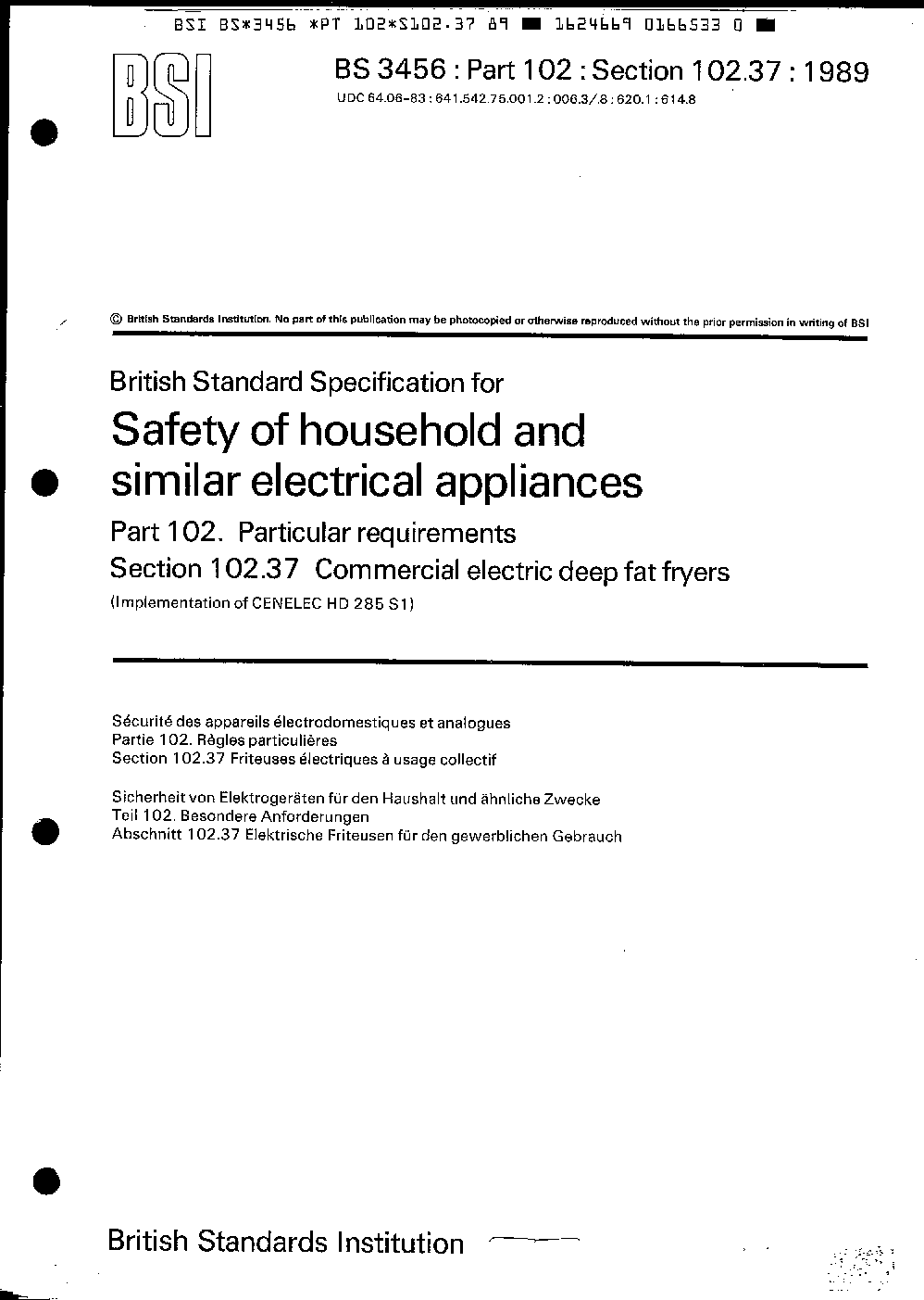 Specification for safety of household and similar electrical appliances. Particular requirements Commercial electric deep fat fryers