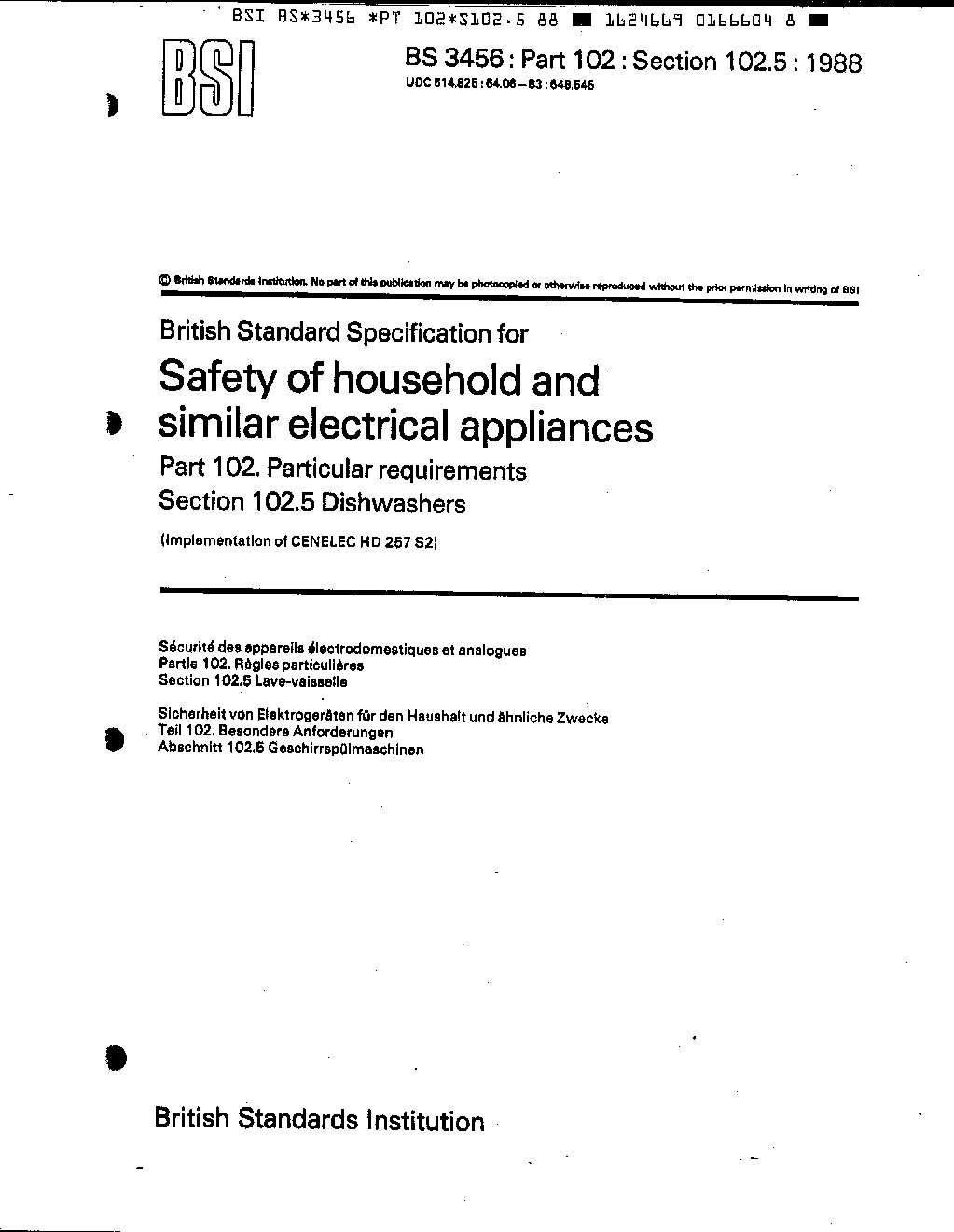 Specification for safety of household and similar electrical appliances. Particular requirements Dishwashers