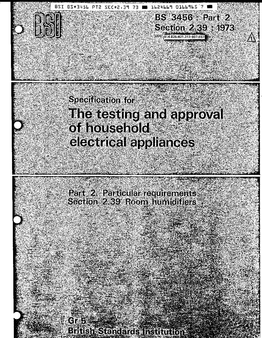 Specification for safety of household and similar electrical appliances. Particular requirements Room humidifiers
