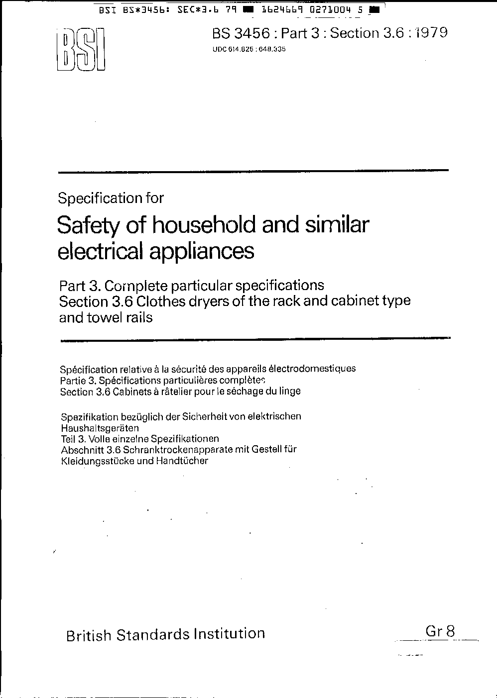 Specification for safety of household and similar electrical appliances. Complete particular specifications Clothes dryers the rack cabinet type towel rails