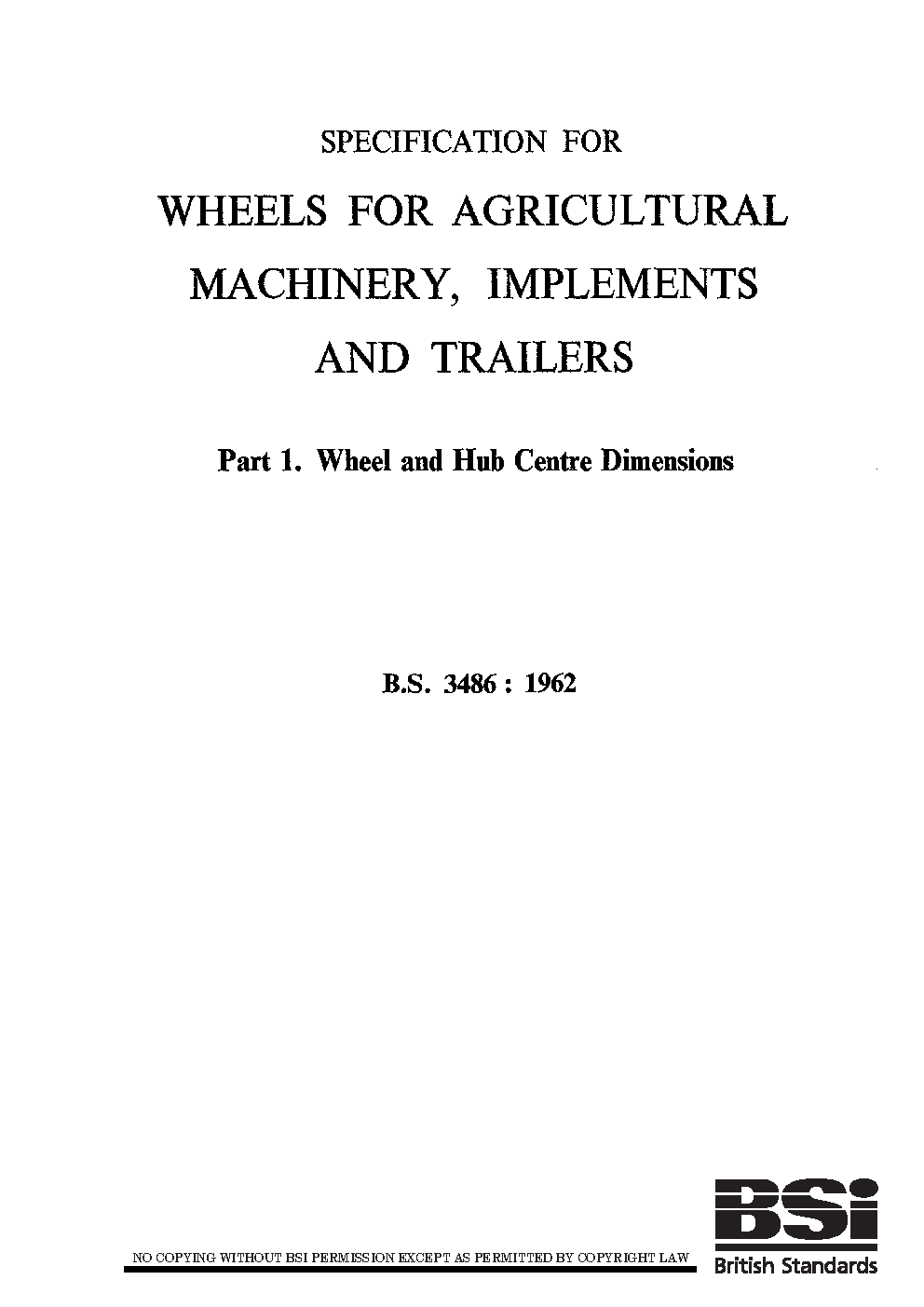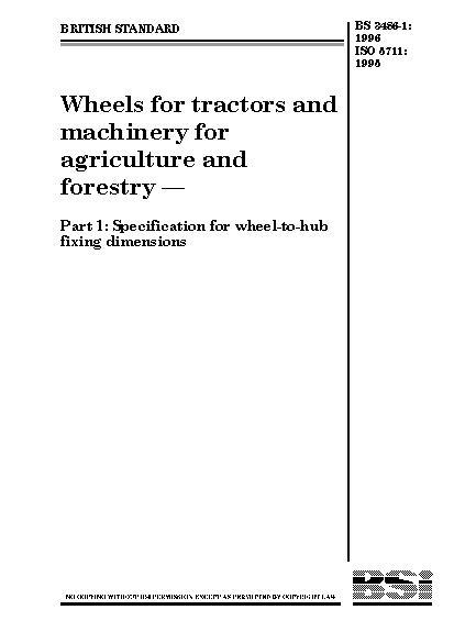 Specification for wheels agricultural machinery, implements and trailers wheel-to-hub fixing dimensions
