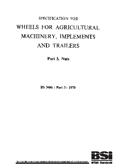 Specification for wheels agricultural machinery, implements and trailers Nuts