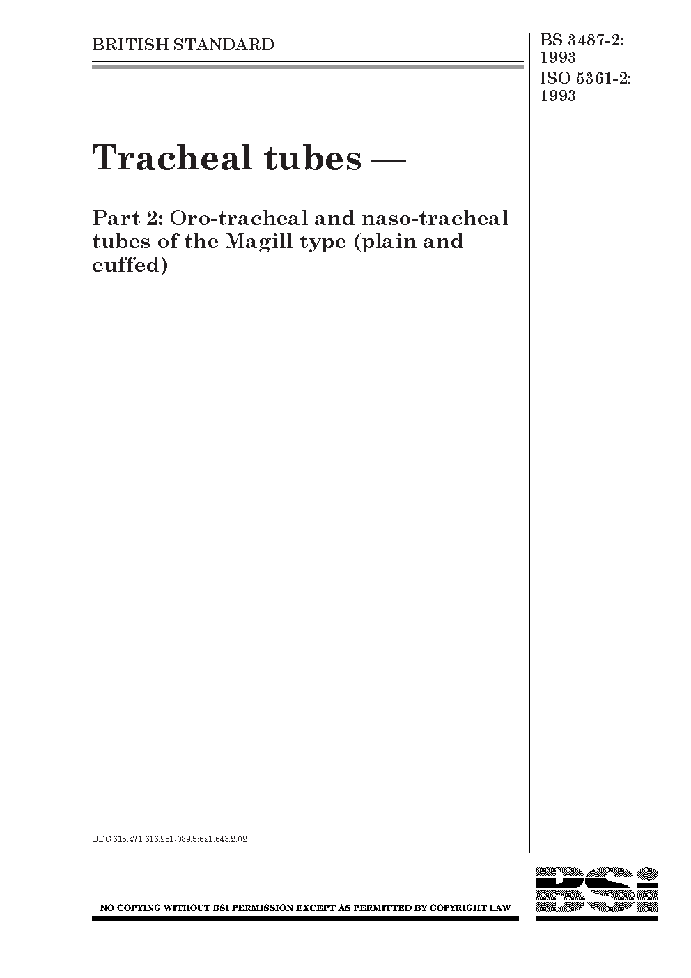 Tracheal tubes Specification for oro-tracheal and naso-tracheal of the Magill type (plain cuffed)