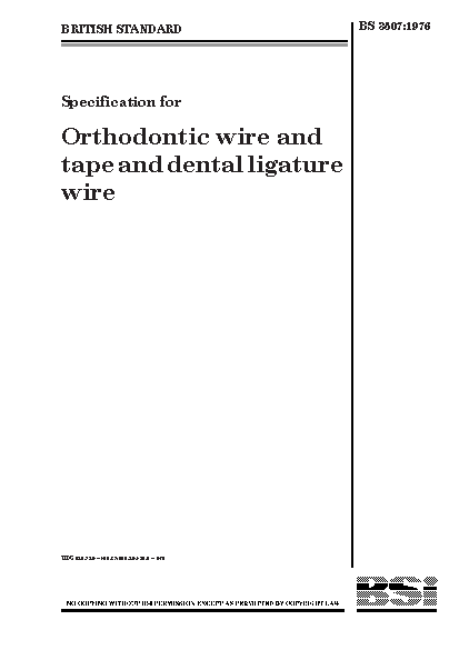 Specification for orthodontic wire & tape and dental ligature wire made of stainless steel.