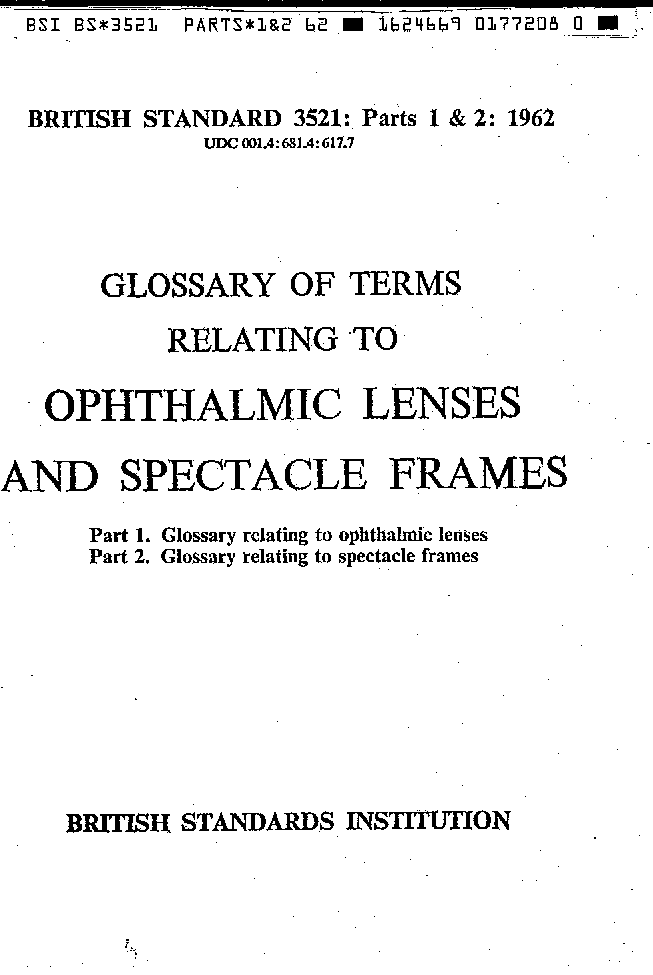 Glossary of terms relating to ophthalmic lenses and spectacle frames lenses. frames.