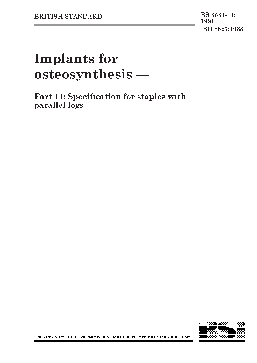 Implants for osteosynthesis osteosynthesis. Specification staples with parallel legs