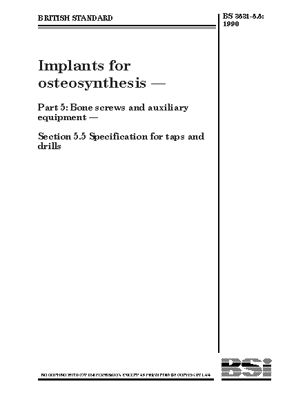 Implants for osteosynthesis. Bone screws and auxiliary equipment Specification taps drills