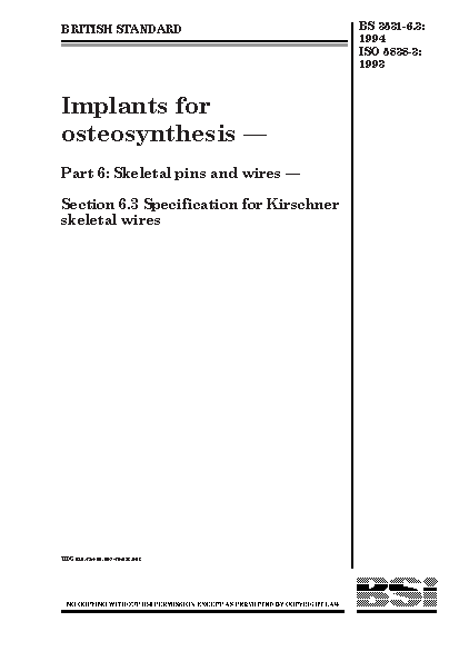 Implants for osteosynthesis. Skeletal pins and wires Specification Kirschner skeletal