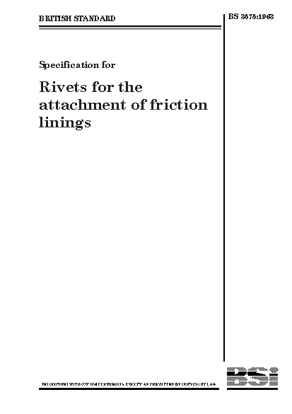 Specification for rivets for the attachment of friction linings